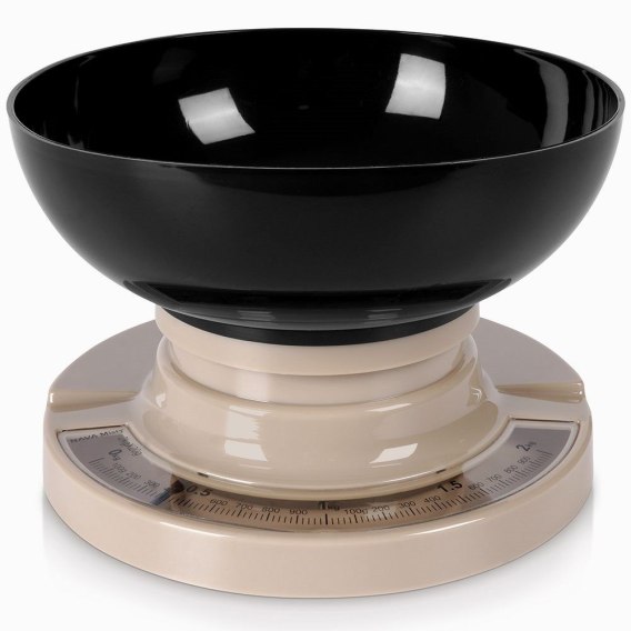 Mechaniczna waga kuchenna, która nie wymaga baterii do jej użytkowania. Posiada zdejmowaną miskę o pojemności 850 ml. Maksymalne obciążenie wagi to 2 kg.