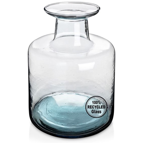 Wazon wykonany ze szkła pozyskanego w 100% z recyklingu, posiada niebieską poświatę. Idealny na kwiaty żywe oraz sztuczne. Wazon będzie piękną dekoracją w każdym domu.