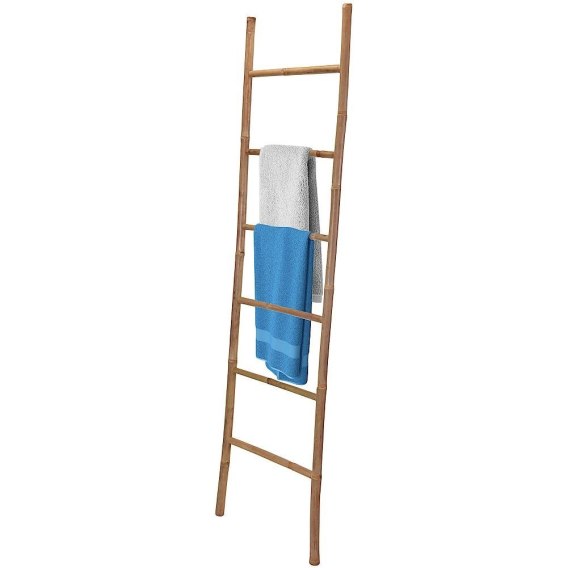 Drabina bambusowa posiada 6 szczebli. Nadaje się do przechowywania ręczników, pasków, oraz może spełnić również funkcje dekoracyjną.