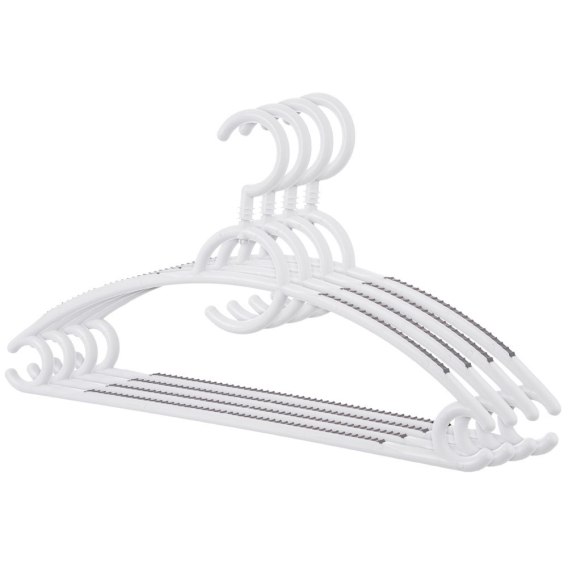 - ANTYPOŚLIZGOWE - Wykonane z najwyższej jakości tworzywa w białym kolorze. Wieszaki posiadają gumowe wstawki w szarym kolorze, które zapobiegają zsuwaniu się odzieży z wieszaka. Wieszaki są solidne i wytrzymałe.
