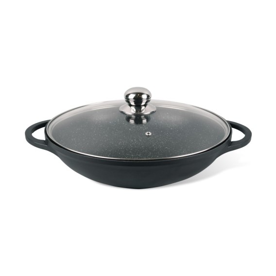 Wok został wykonany z odpornego na uszkodzenia materiału z granitową powłoką nieprzywierającą, która: