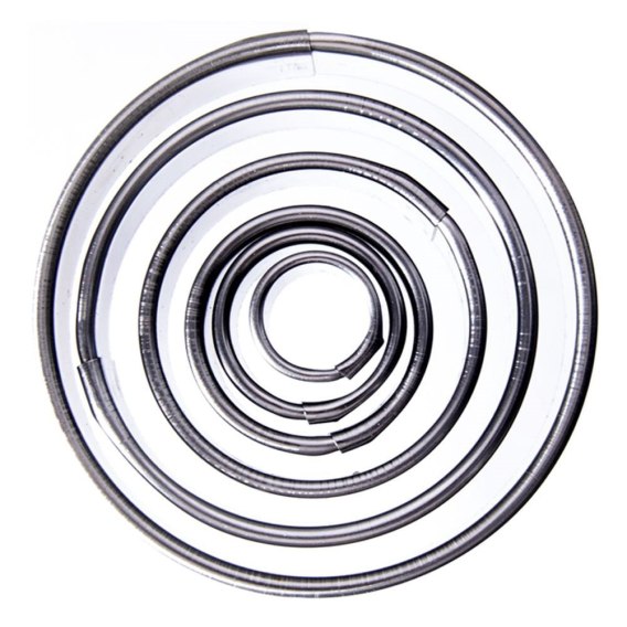 Zestaw 5 klasycznych wykrawaczy cukierniczych w kształcie koła. Wykonane ze stali nierdzewnej. Idealne do wykrawania ciasta na pierniki czy ciastka.