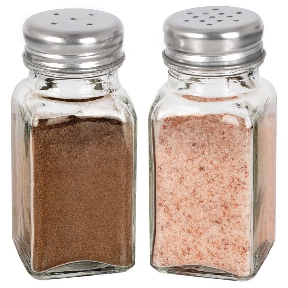 Zestaw dwóch pojemników do podawania soli pieprzu. Wykonany z przezroczystego szkła oraz stali nierdzewnej. Niezbędny zestaw w każdej kuchni.