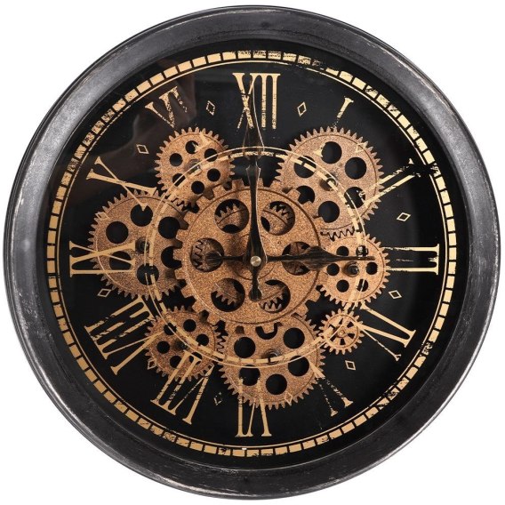 Zegar ścienny czarny złoty ruchome koła zębate 35 cm VILDE 569260