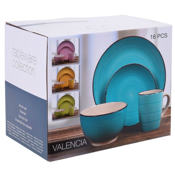 Zestaw 16 elementowy przeznaczony dla 4 osób. Niezbędny podczas śniadań, obiadów i kolacji. Wykonany z ceramiki, utrzymany w modnej kolorystyce.